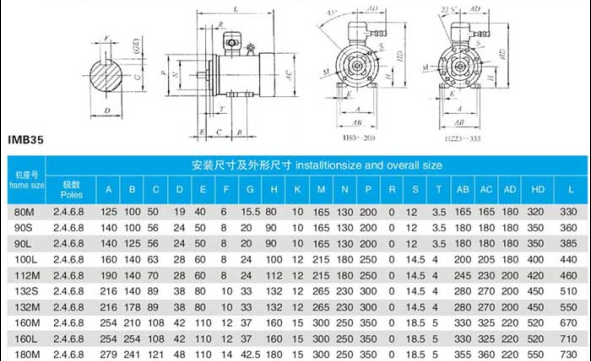最后就是YBBP變頻防爆電機(jī)的參數(shù)